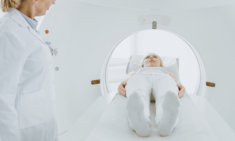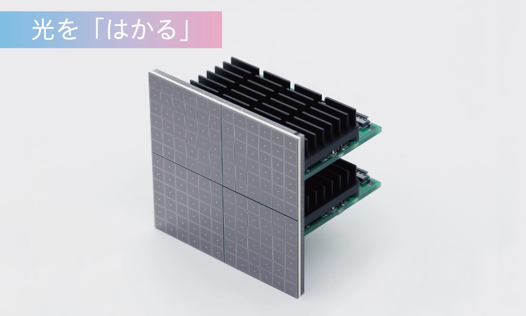 X線を利用して人体を輪切りにしたような断層画像や立体的な画像を取得して身体を検査します。浜松ホトニクスは検出器の感度向上によって、検査における低被ばく化や取得画像の高解像度化に貢献します。